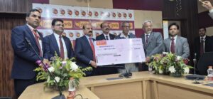 उपनल के मृतक आश्रितों को चेक वितरित करते PNB के प्रबंध निदेशक अशोक चंद्रा